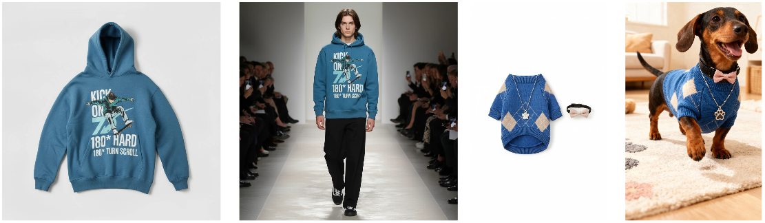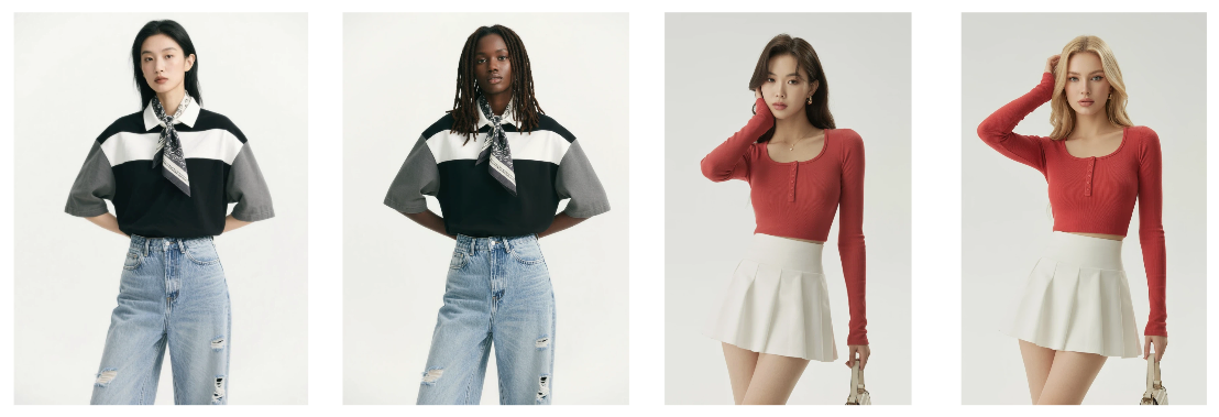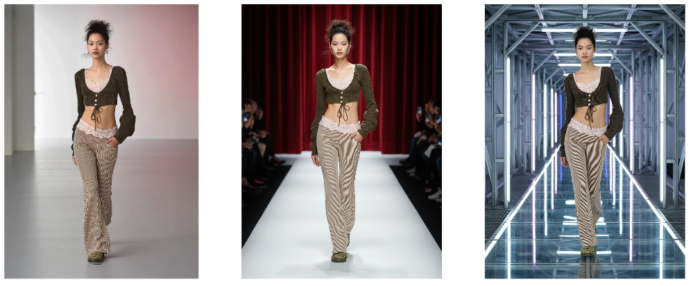 可以灵活组合多种指令,实现更高自由度的模特试衣效果