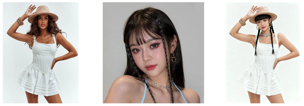 使用方式:上传原始模特图 + 指定模特人脸图 ➕ 输入指令