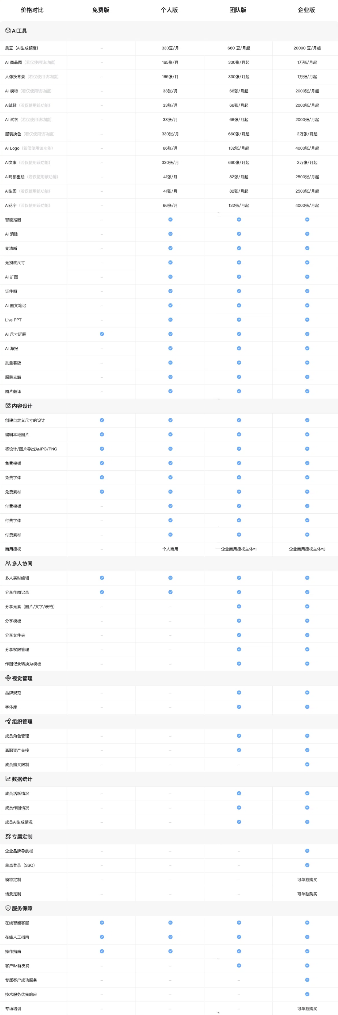 个人版团队版权益对比