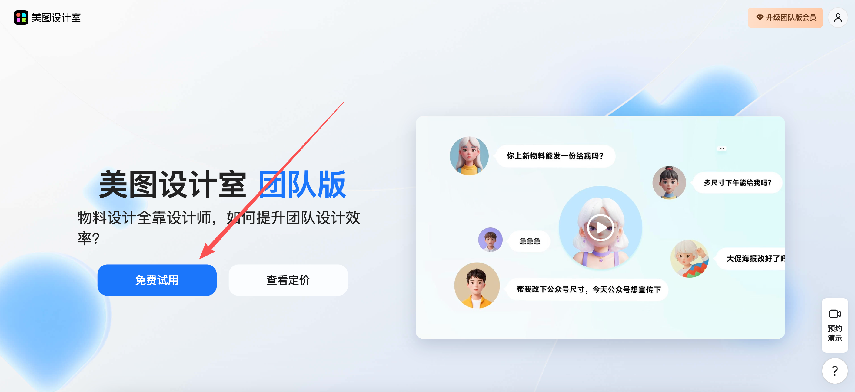 点击下方【免费试用】-弹窗选择【免费创建新团队】